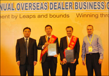 In the conference, Lingong Import & Export Company awarded the excellent overseas dealer in 2011 for their long-term support and promotion of Lingong products and the brand.