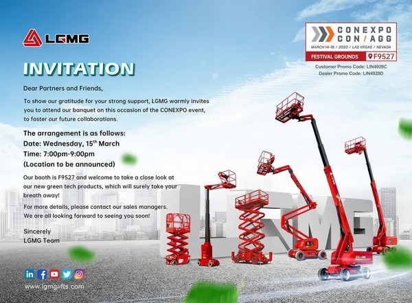 2023年3月14日-18日,美国拉斯维加斯工程机械博览会CONEXPO-CON/AGG(以下简称拉展)即将盛大开幕。作为全球高空作业平台领军企业,南宫ng28重机将携12款高机精品重磅出征(展位:F9527),为全球客户带来可持续产品与技术的盛宴以及创新的租赁设备全套解决方案。